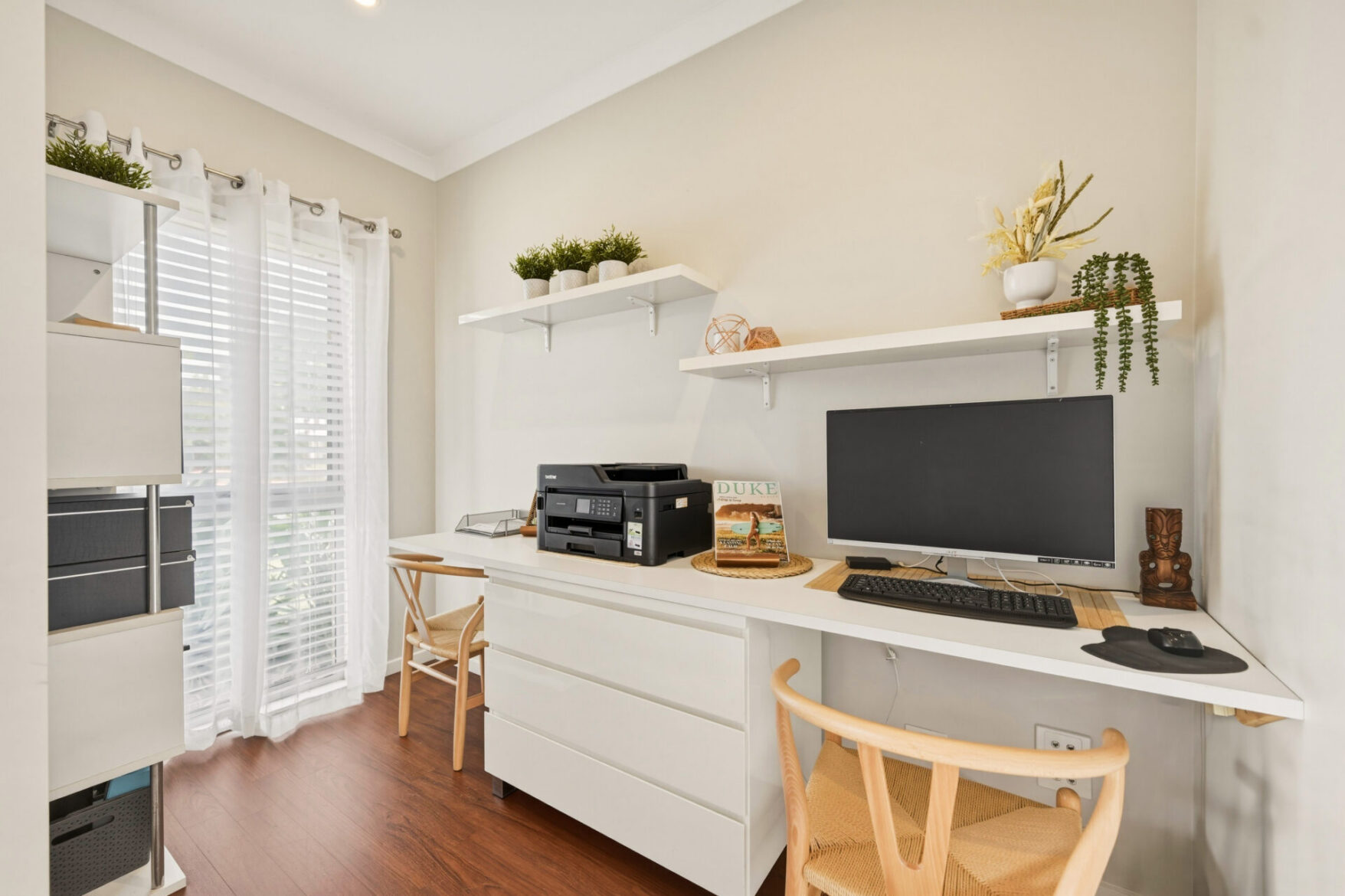 Secure two-car accommodation ensures practicality, complemented by a lock-up shed for added storage and versatility. With four bedrooms and two bathrooms anchoring the accommodation wing, this home balances lifestyle and function without compromise.