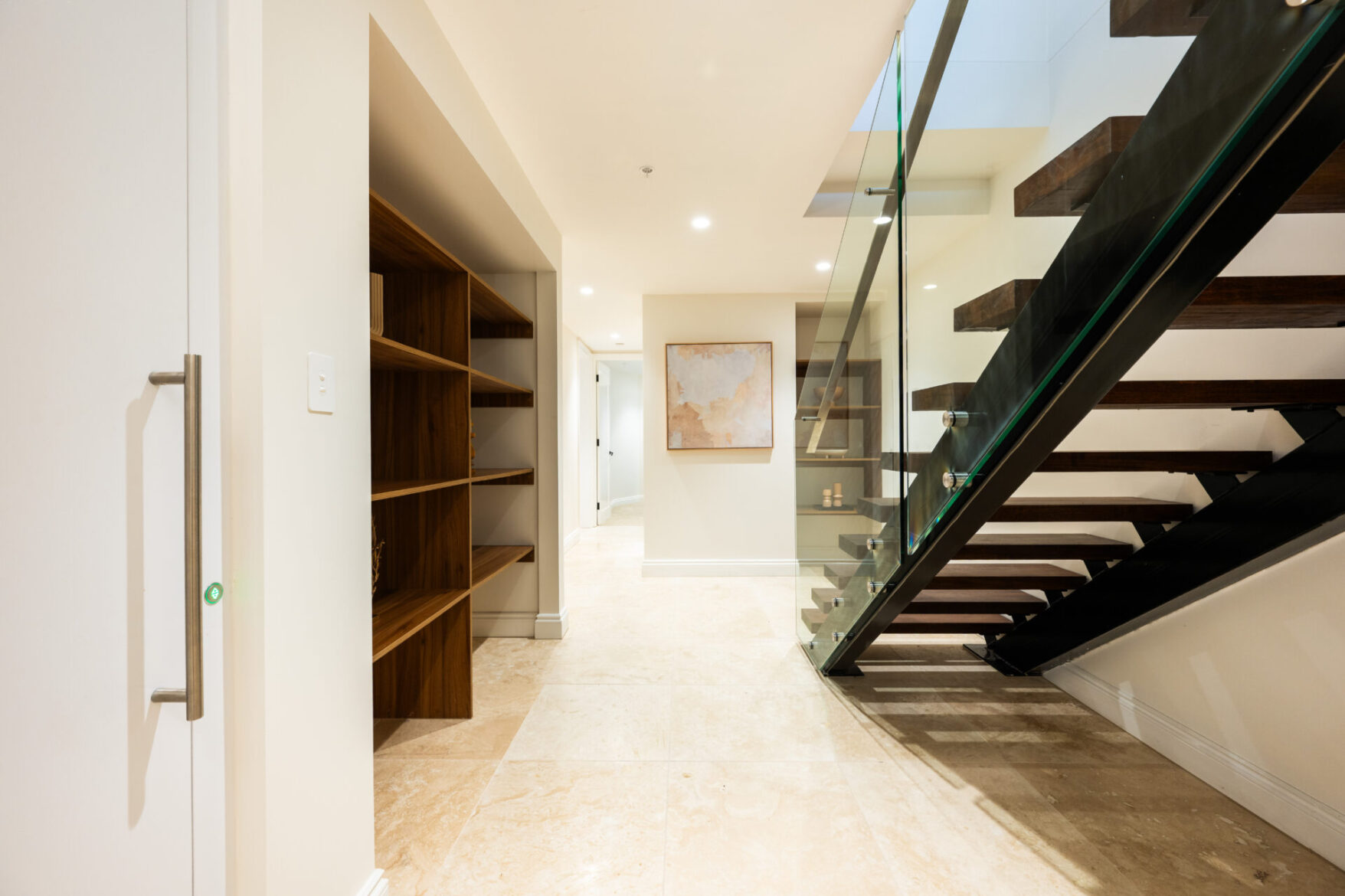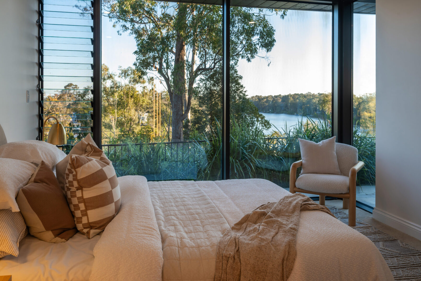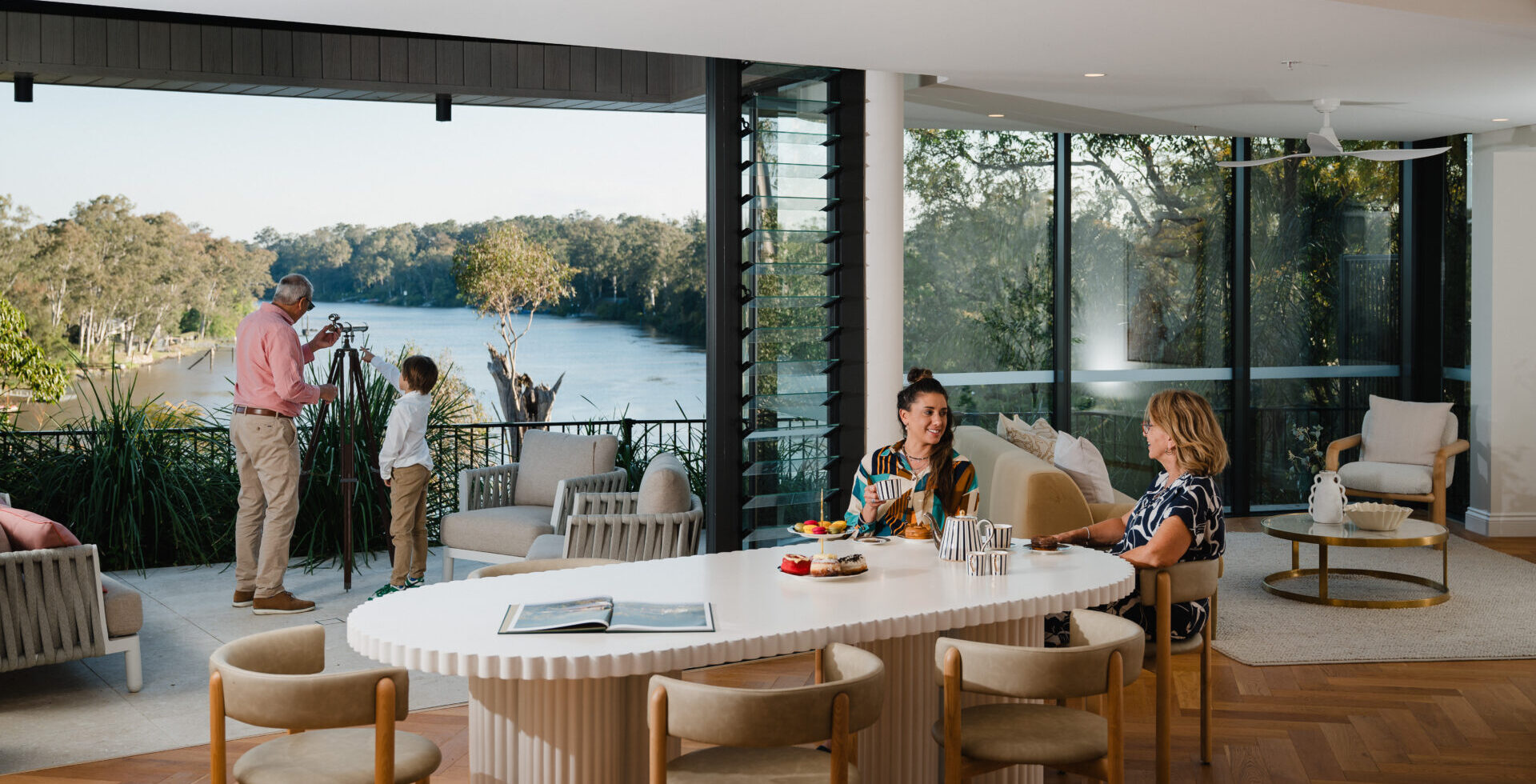 Across two expansive levels and 346m² of refined interiors, the residence is a masterclass in understated luxury. Herringbone oak floors, marble finishes, bespoke cabinetry and designer lighting all speak to an attention to detail rarely seen. At its heart, a Gaggenau-appointed kitchen and butler’s pantry set the stage for effortless entertaining, while curved glass walls draw the river into your everyday life.